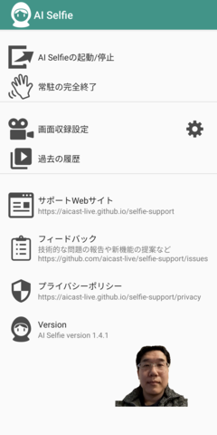 AI Selfieを使うと、スマホだけで簡単に顔出し実況中継ができます。このアプリを立ち上げてゲームをするだけ!!今までパソコンや機材が必要で手間や時間がかかった顔出しゲーム実況中継が簡単にできます。AIを使ってスマホのカメラに写った画像から人の顔部分を特定し抽出します。これからゲーム実況を考えている方や、すでに実況している方は是非トライしてみてください!!